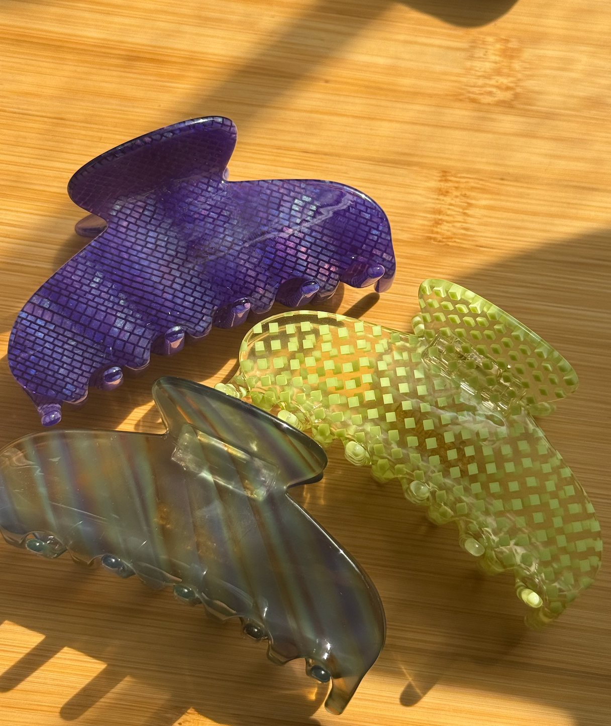 A juicy twist on everyday styling. This lime green checker claw is fresh, playful, and a little unexpected—adding just the right pop of color to any look. Lightweight and secure, it’s perfect for everything from running errands to dressing up a simple pony. 3.6" Acetate Hair Claw Slight variations will appear with pattern, color, and form due to the handmade nature of the product.