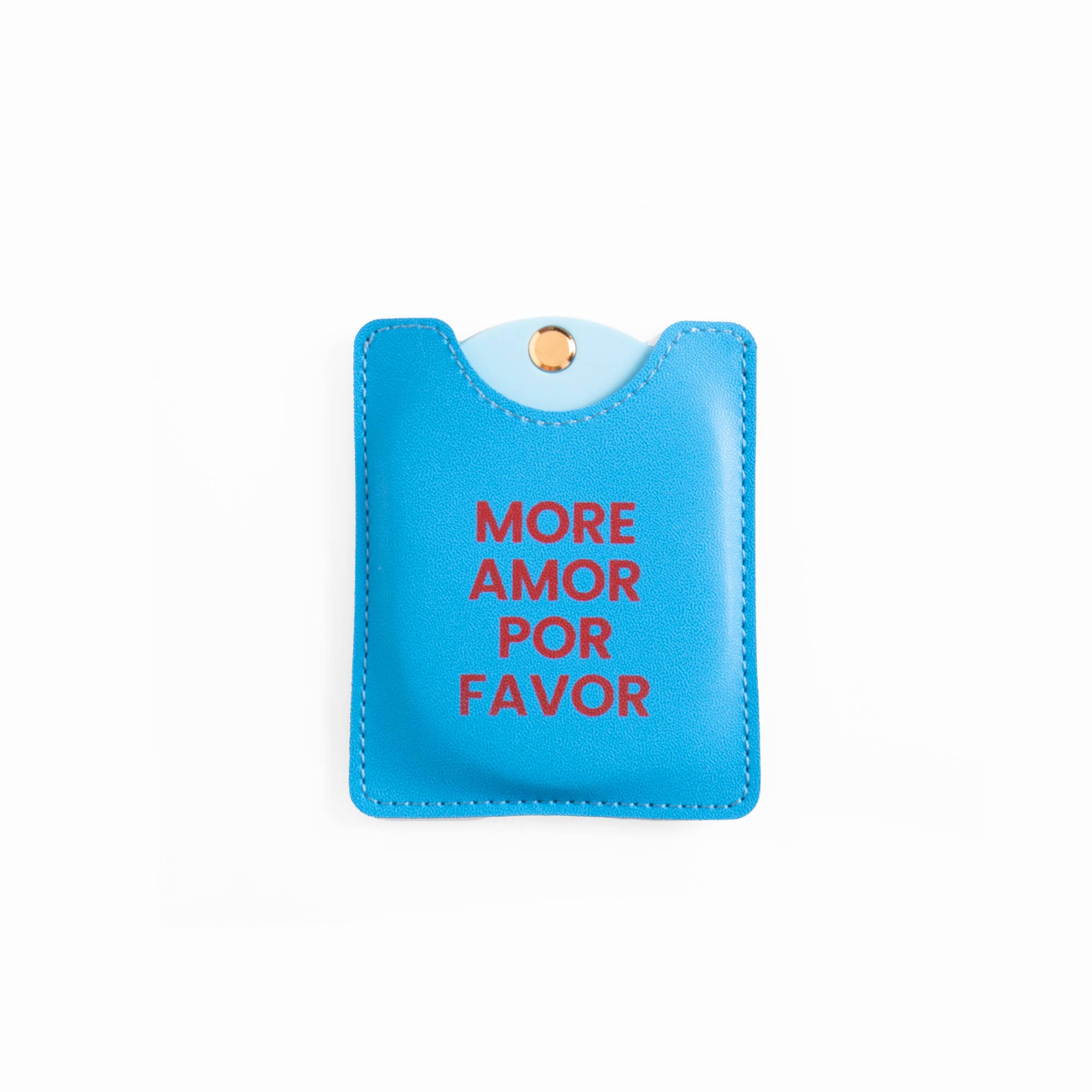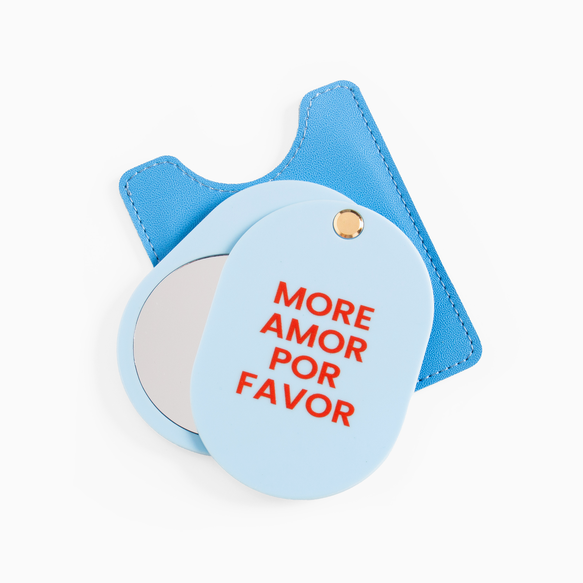 Light blue pocket mirror, fresh and practical to have on hand. Lightweight, compact, and perfect for quick touch-ups.