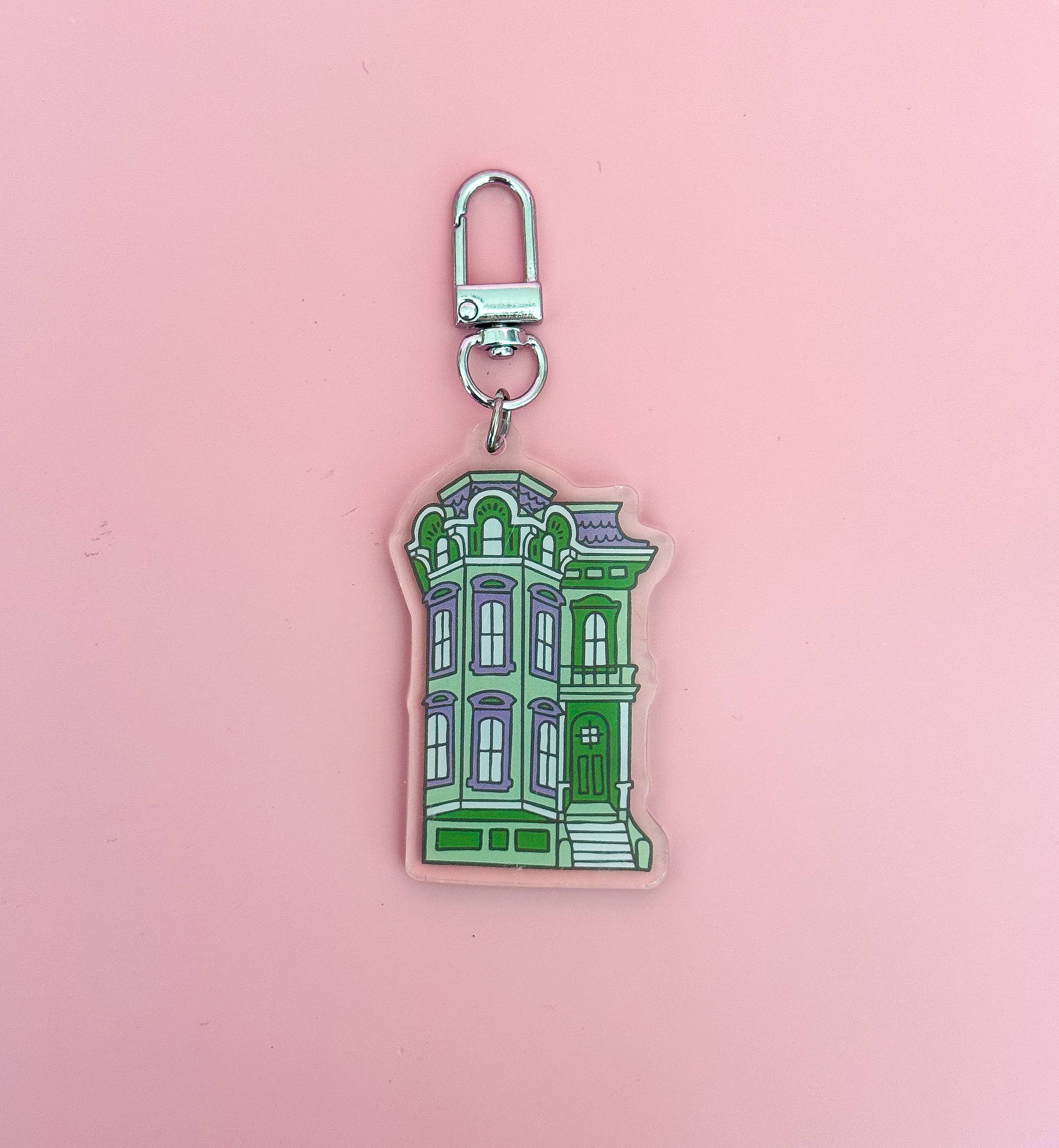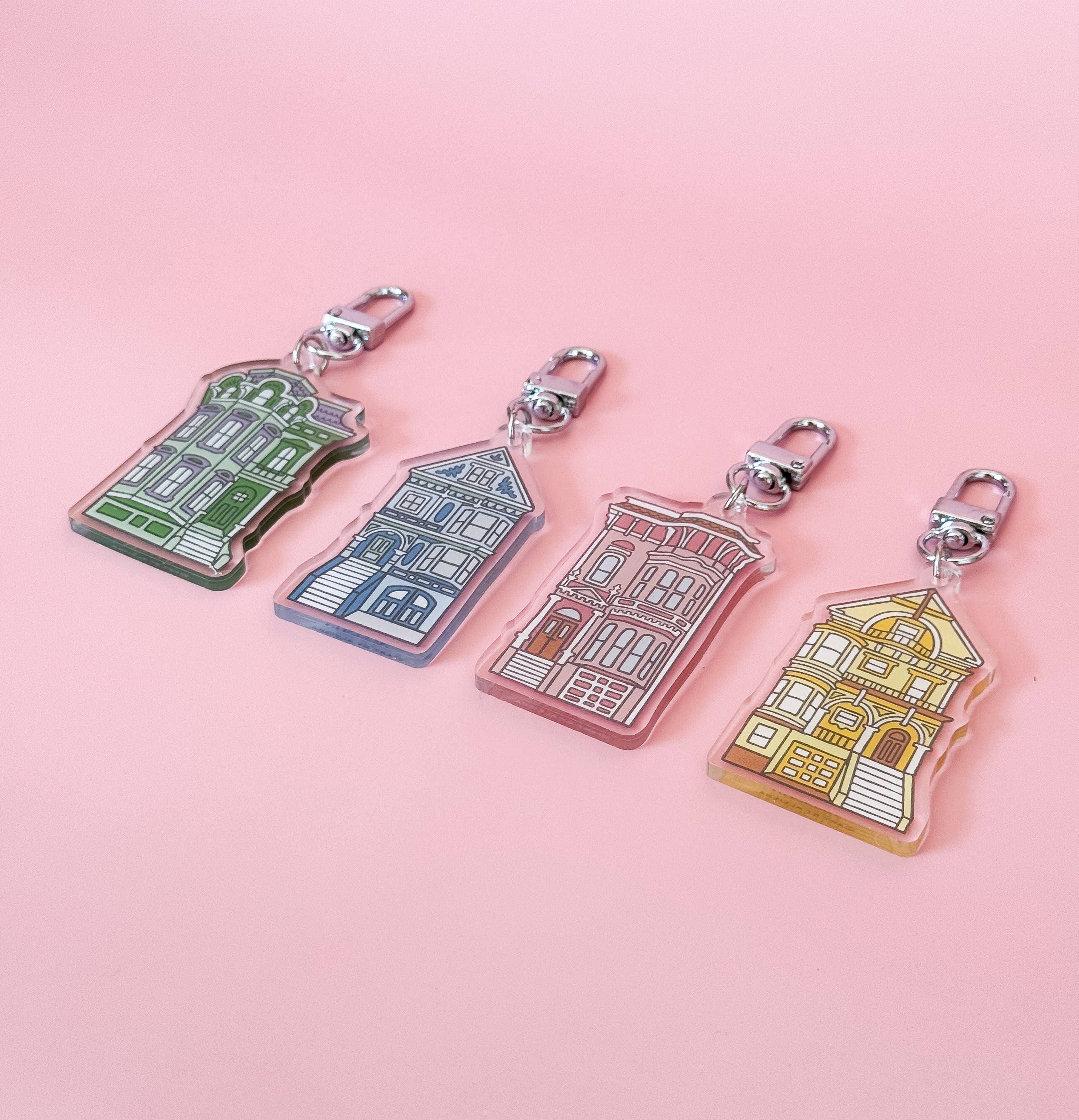 Carry a piece of San Francisco wherever you go! This clear acrylic keychain features Aleisha Nelson’s hand-illustrated design of a charming Painted Lady—a nod to the city’s most iconic row of Victorian homes. Durable, lightweight, and perfectly sized for your keys or bag, it’s a little reminder of the pastel skyline that makes San Francisco so unforgettable. Designed as the perfect keepsake for locals who love their city and visitors who never want to leave it behind.