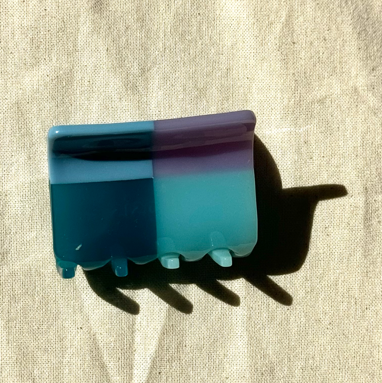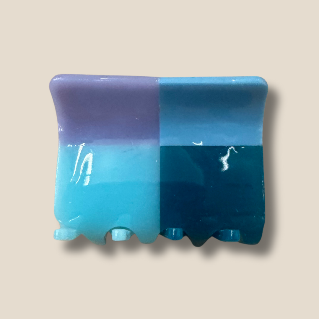 A vibrant fusion of blue and purple tones, the Blues Quad Claw is your go-to for a bold yet sophisticated look. Featuring a sleek quadrant design that balances deep violets with soft blues, this medium-sized claw offers a refreshing twist on classic hair accessories. Whether you're looking to add a pop of cool color to your daily style or elevate a special occasion look, this clip effortlessly blends function and flair.