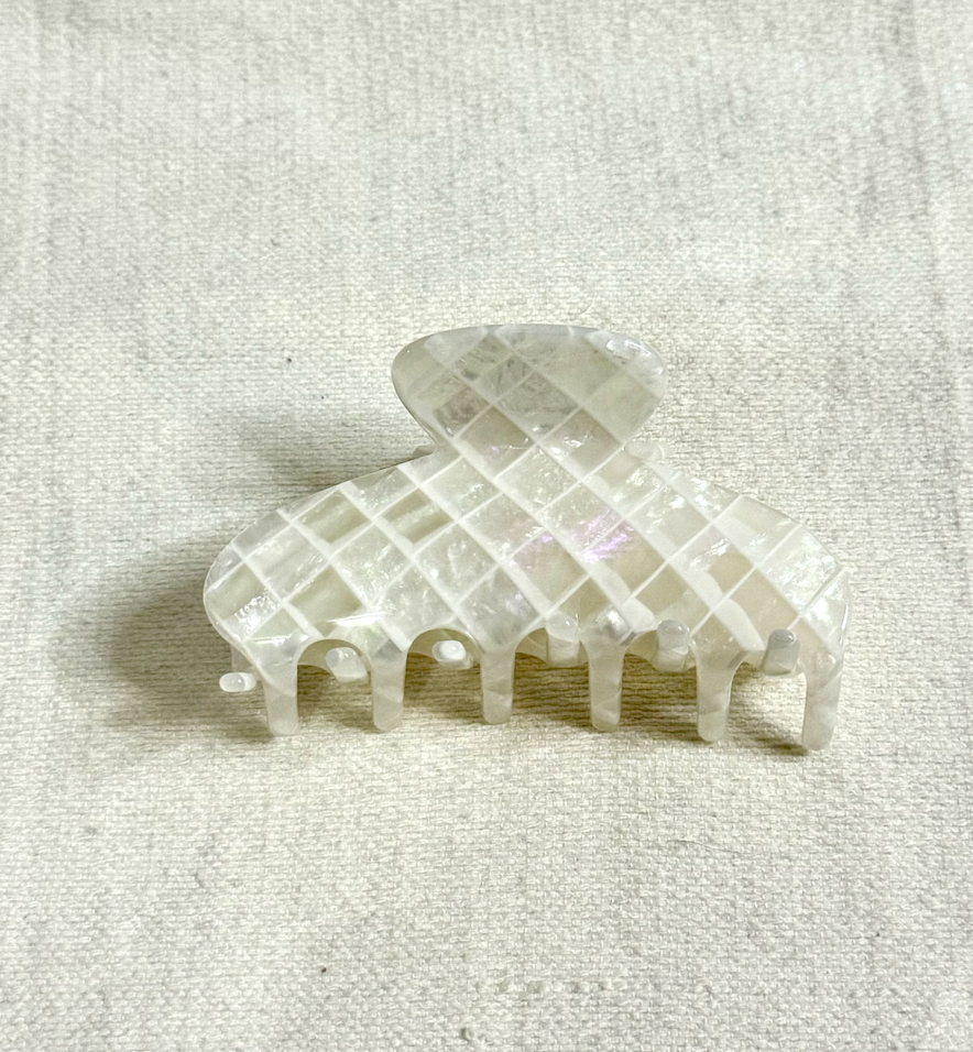 Elegant and eye-catching, this iridescent white tile-style hair clip adds a touch of shimmer to your everyday look. The luminous finish reflects light beautifully, creating a subtle glow that enhances any hairstyle. Perfect for all hair types, it's a chic and versatile accessory that seamlessly elevates your style.