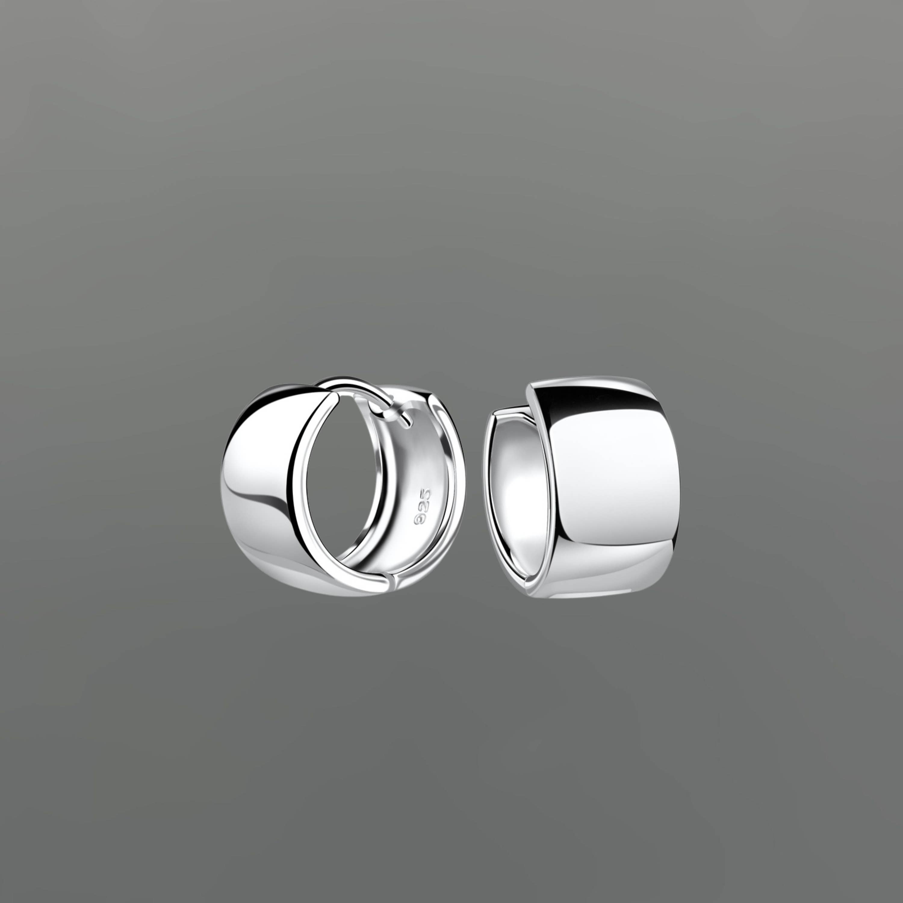 • Extra Wide Clicker Huggie Hoops, Sterling Silver