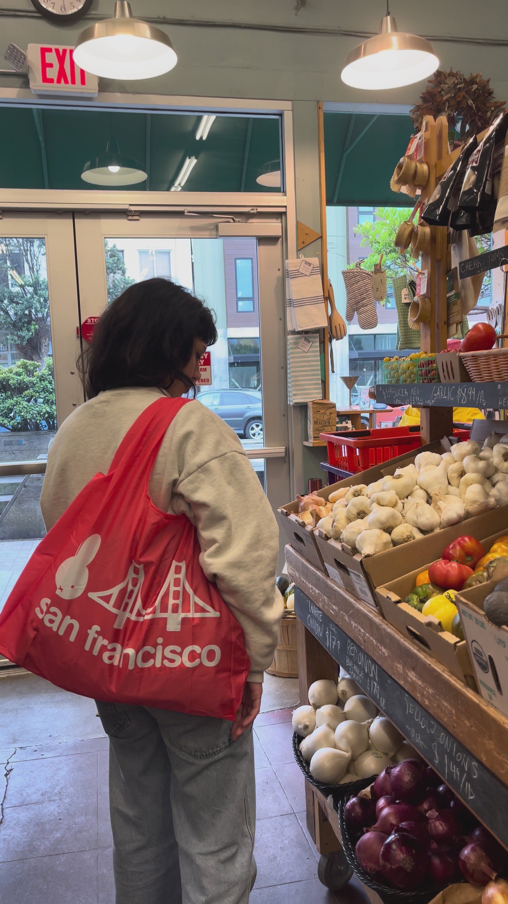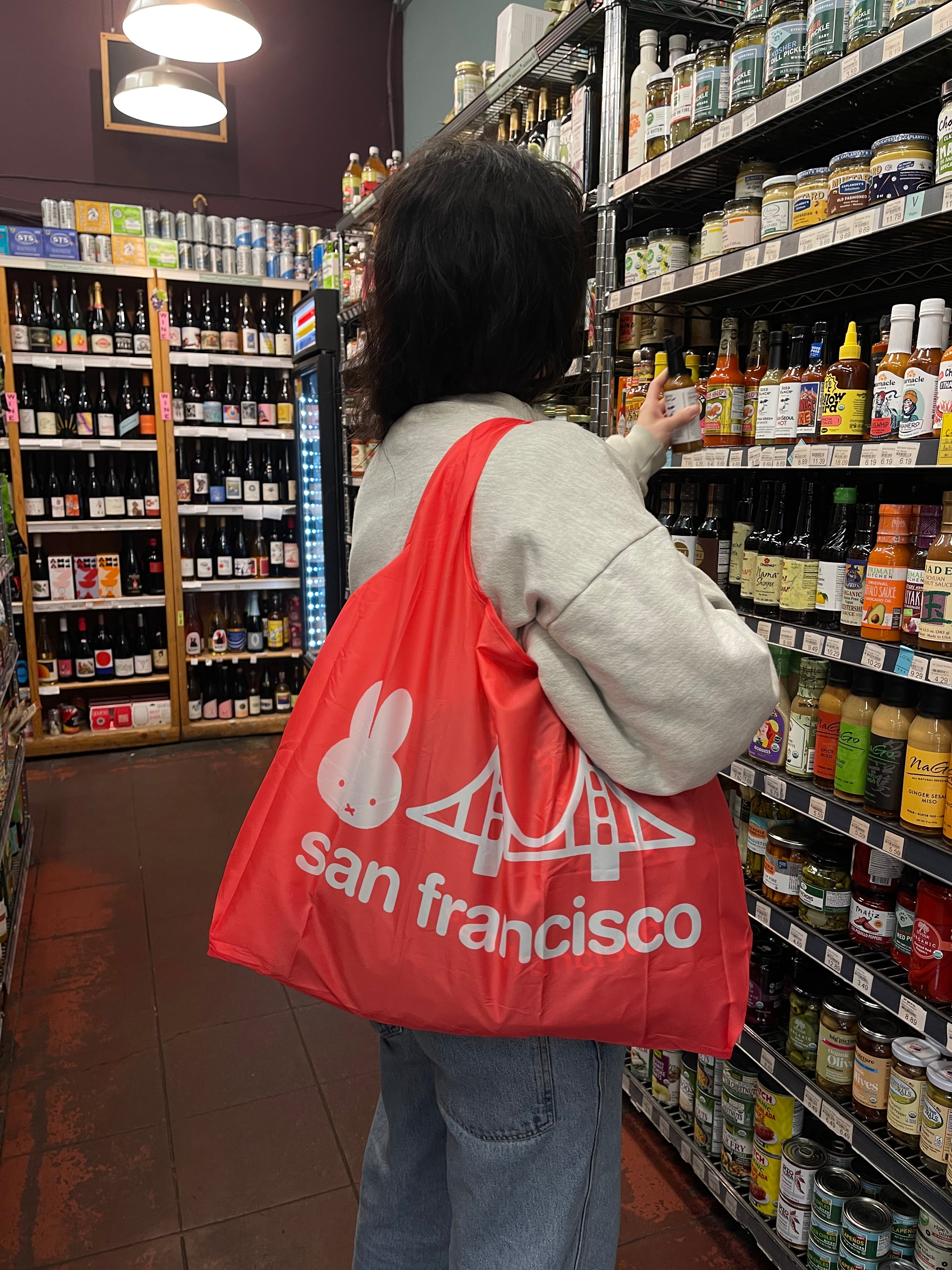 The Miffy SF Reusable Tote is a must-have for eco-conscious shoppers. Made from durable, high-quality materials, this tote features a charming bridge graphic in vibrant red. With its spacious design and sturdy handles, it's perfect for carrying groceries and everyday essentials while reducing your carbon footprint.