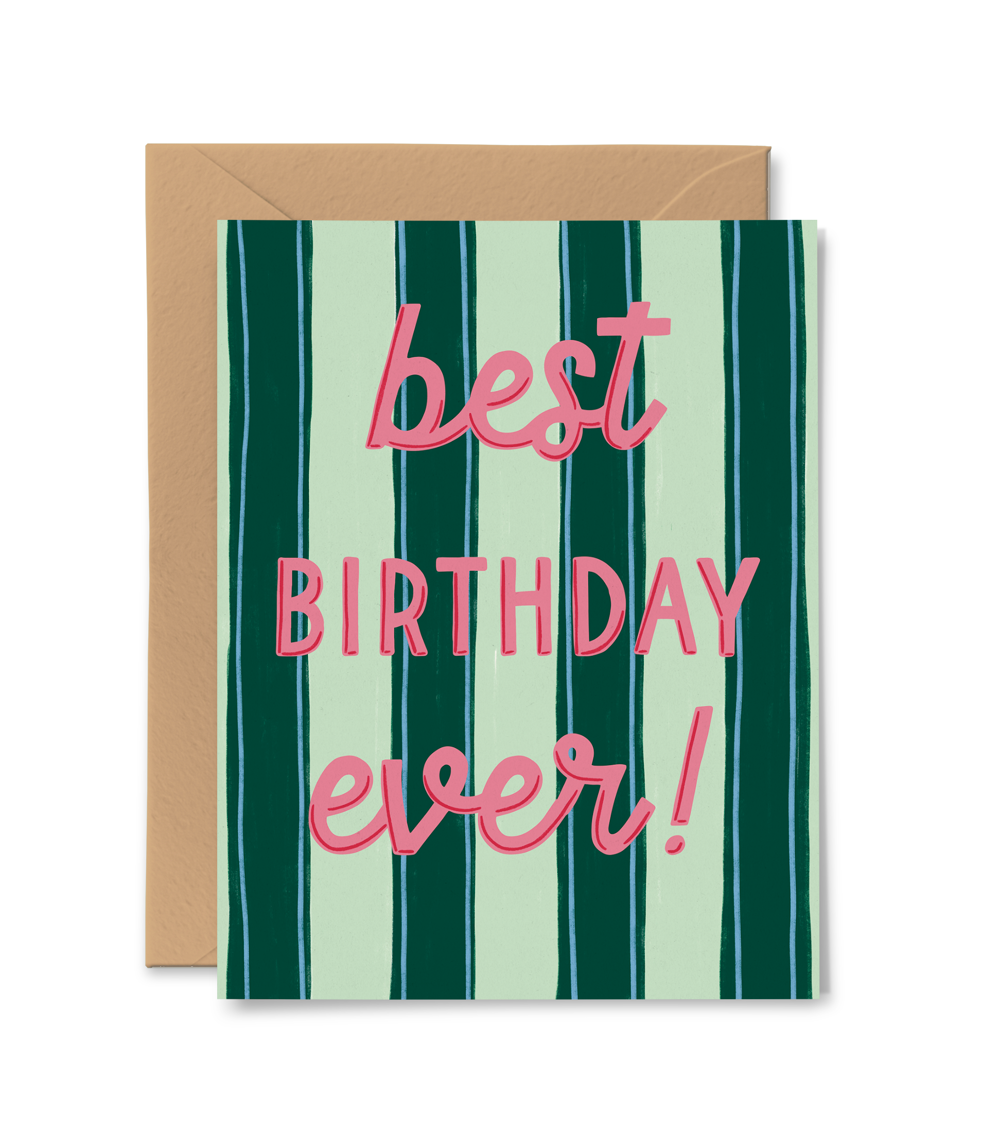 Best Birthday Ever. Thick, heavyweight paper means no ink bleed through, and a classic kraft envelope adds the perfect touch. Features: -A2 (4.25x5.5 inch) -Printed on thick, textured linen cardstock -Blank inside for personalized message -Comes with kraft envelope and plastic sleeve for protection
